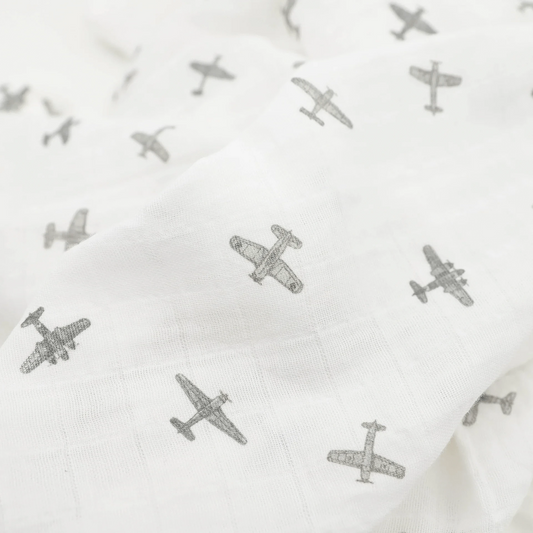 Organic Cotton Muslin Swaddle Blanket - Pewter Planes