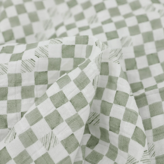 Organic Cotton Muslin Swaddle Blanket - Green Checker